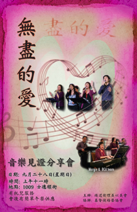 國際基督徒培藝協會(BCA)與牧愛浸信會,於十一月七日星期六晚上舉辦《真愛不變》音樂佈道會,特別邀請來自馬來西亞的福音歌 手張秀梅為您獻唱和見證分享。